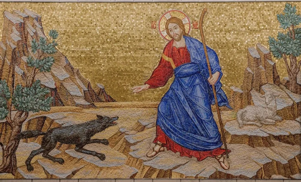 There is a beautiful mosaic in the newly completed St. Callistus Chapel at Christ Cathedral in Garden Grove located in the Bishops’ crypt that depicts Jesus as the Good Shepherd guarding his flock from the ravages of the wolf. At first when the design was presented to the design committee for the chapel, it immediately captured our attention for dramatically depicting precisely the role of the Bishop in the midst of God’s people. How appropriate that this beautiful and dramatic image should grace the tombs of those who have selflessly watched over our local Church.